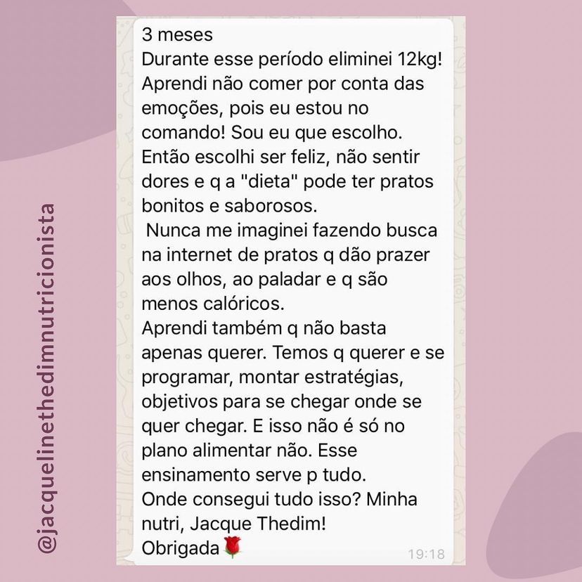 Conte com a nutri Jacque durante todo o processo.